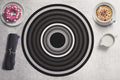 Unsere lebendige und fesselnde Kollektion von Vinyl-Tischsets mit Kreismuster hat eine künstlerische Note. Wenn Sie Ihrem Speiseerlebnis einen Hauch von Farbe und Stil verleihen möchten, sind Sie hier genau richtig. Unsere zusammengestellte Kollektion verwandelt Ihre Tischdekoration in ein Mix aus Design und Eleganz.MATERIAL