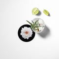 The flower power design patterns on this round black vinyl coaster set with 6 designs are vibrant and eye-catching. These intricate florals patterns in white shade colors will instantly brighten up your dining table and become a focal point on your table. Dine in style white floral patterns and mix them for a Wow effect!