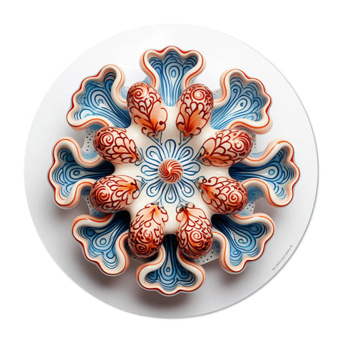 Elevate your dining experience with our round vinyl placemat featuring a design coral art design in shades of orange and blue, inspired by Portuguese ceramic artistry. These placemats boast bold colors and are incredibly easy to clean. Bring a touch of maritime to your table setting today!