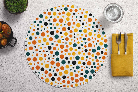 Embracing the timeless and playful polka dot trend, these round vinyl placemats bring a fun and modern touch to any table setting. These placemats will add a touch of whimsy and sophistication to your table. Mix and match them with your existing tableware for a cohesive, on-trend look, or use them as a standalone statement piece to create a "wow" factor. Crafted from high-quality vinyl sourced in Europe, these placemats are not only visually striking but also incredibly durable and easy to clean.