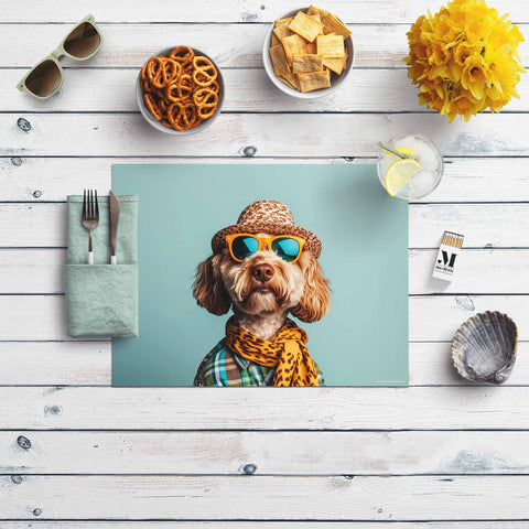 Rectangular vinyl placemats featuring playful dog portraits dressed in original outfits—whether in summer style or cozy winter looks. Whatever your favorite breed, you’re sure to find the perfect match in this wide collection, one of our absolute bestsellers. For a table setting full of character and charm, choose our vinyl placemats designed with a sense of fun and style.