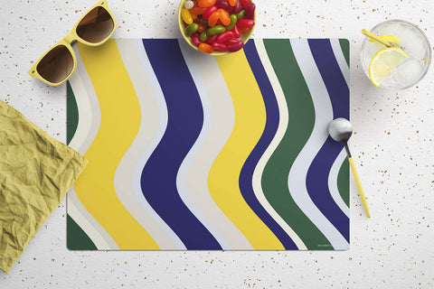 Elevate your dining decor with our vinyl placemats featuring a colorful mix of yellow waves colors. Designed in Germany, these placemats are not just functional but a stunning addition to your table. With a harmonious blend of colors, they effortlessly mix patterns, adding a touch of elegance. Cleaning is a breeze, making them a practical choice for any home.