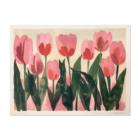 We have reimagined traditional floral patterns with a fresh, contemporary approach. Bold, graphic representations of tulips dance across each placemat, creating a playful yet sophisticated table setting that celebrates the renewal of spring.MATERIAL